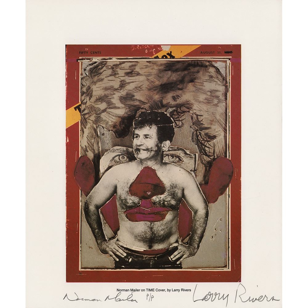 Limited edition 10 x 12 printer's proof photolithograph of Larry Rivers' portrait of Norman Mailer originally created for the cover of Time magazine, numbered P/P, signed in the lower border in pencil by both men. Complete with the original folder and colophon, noting that the edition was released in 100 numbered copies plus 20 hors commerce copies numbered P/P. In very fine condition