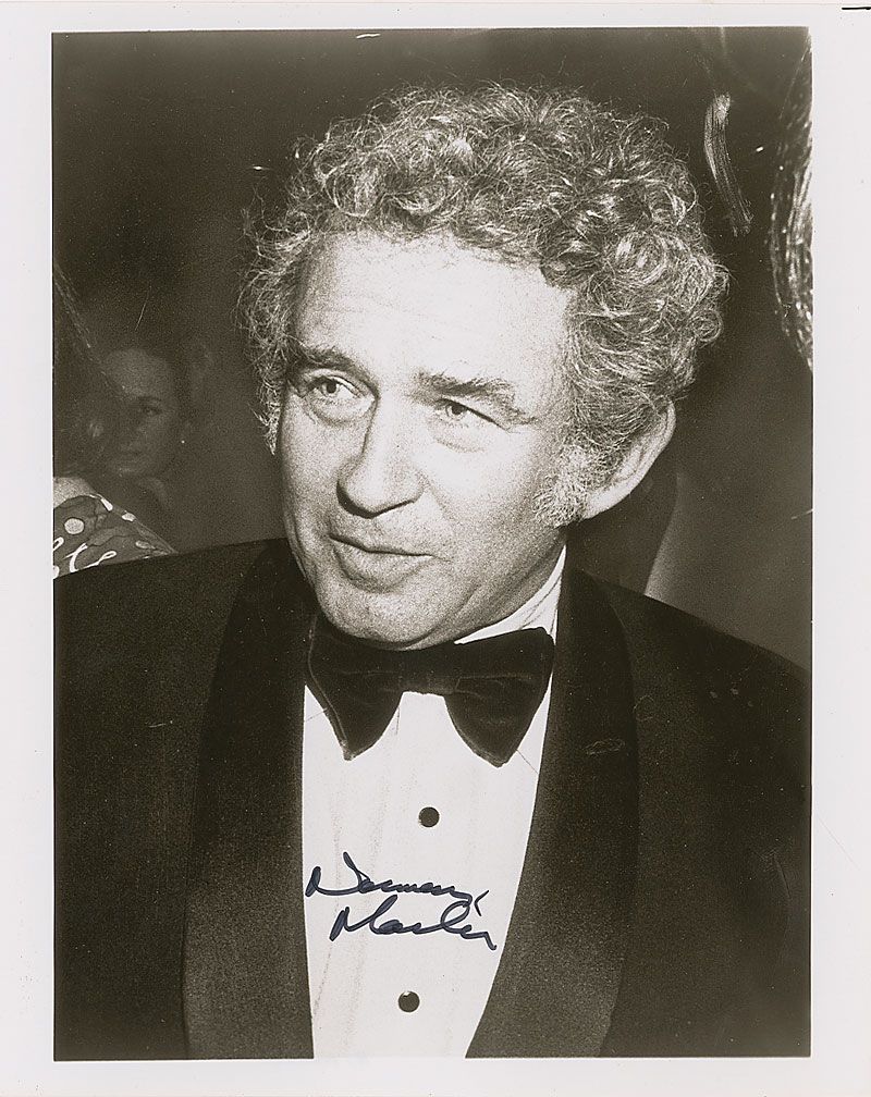 Glossy 8 x 9.75 photo of the author wearing a bow tie, signed in black felt tip. In fine condition, with top edge possibly trimmed. Autographed photos of Mailer, a format he rarely signed, are quite uncommon.
