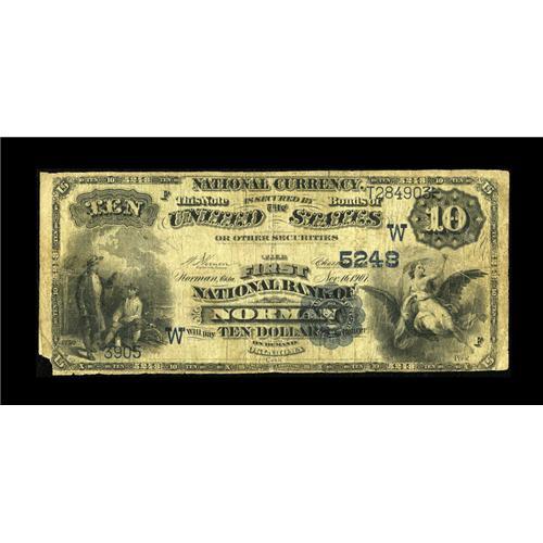 <B>Norman, OK</B></I> - $10 1882 Date Back Fr. 546 <B>The First NB</B></I> Ch. # (W)5248<BR>This early Norman note is new to the census. <B>Very Good</B></I> or a bit better, with a small piece missing at the bottom left corner.<BR><BR><b>Shipping:</b> Coins & Currency (<a target="_blank" href="http://www.heritageauctions.com/common/shipping.php">view shipping information</a>)
