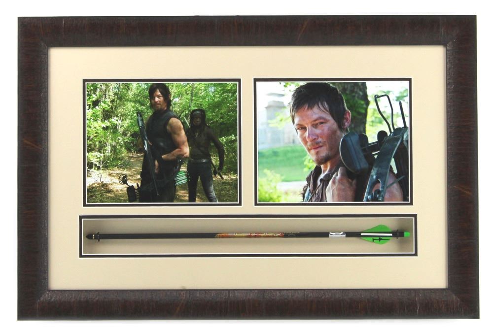 Custom framed photo display measures 20" x 30" in size. Features an arrow that has been hand-signed in black felt-tip pen by Norman Reedus (Daryl Dixon).