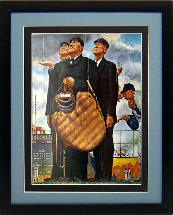 Artist: Norman RockwellTitle: Bottom of the 6thMedium: PrintFrame: Black WoodenFrame Size: 17 x 15"Condition: ExcellentBiography(1894 - 1978) Norman Rockwell was a 20th-century American painter and illustrator. His works enjoy a broad popular appeal in the United States for their reflection of American culture. Rockwell is most famous for the cover illustrations of everyday life scenarios he created for The Saturday Evening Post magazine for more than four decades. Among the best-known of Rockwell's works are the Willie Gillis series, Rosie the Riveter (although his Rosie was reproduced less than others of the day), Saying Grace (1951), The Problem We All Live With, and the Four Freedoms series. He is also noted for his work for the Boy Scouts of America (BSA); producing covers for their publication Boys' Life, calendars, and other illustrations.