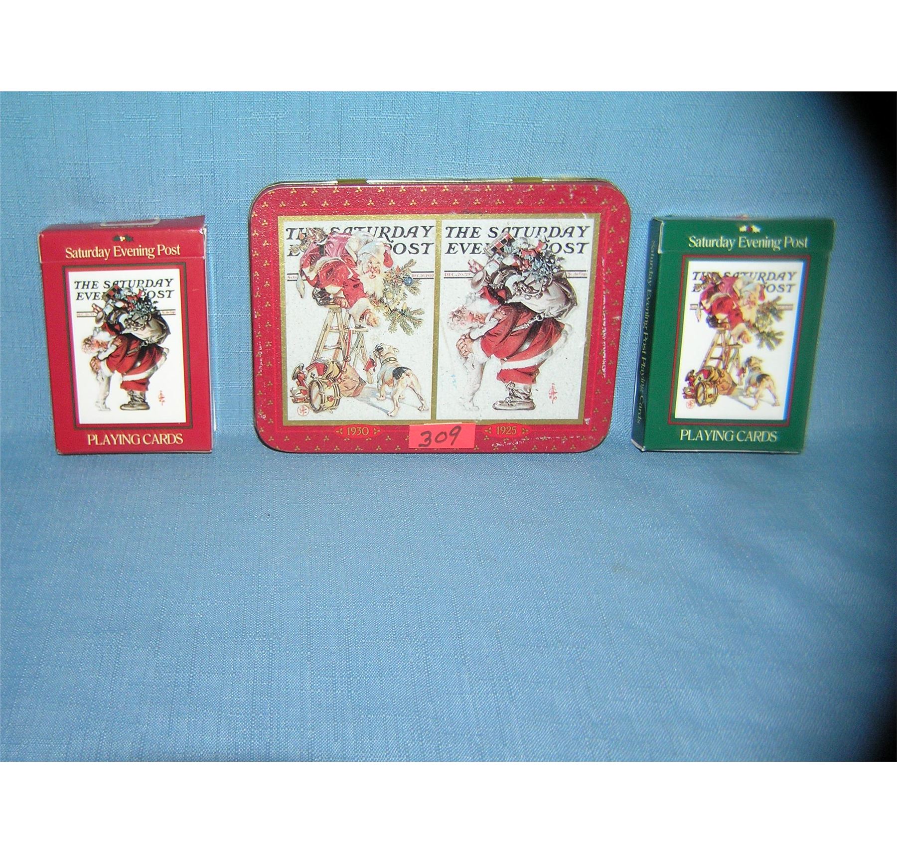Norman Rockwell Saturday Evening Post 1925 and 1930's style dual playing card set in collector tin box est. value $30.00-$35.00