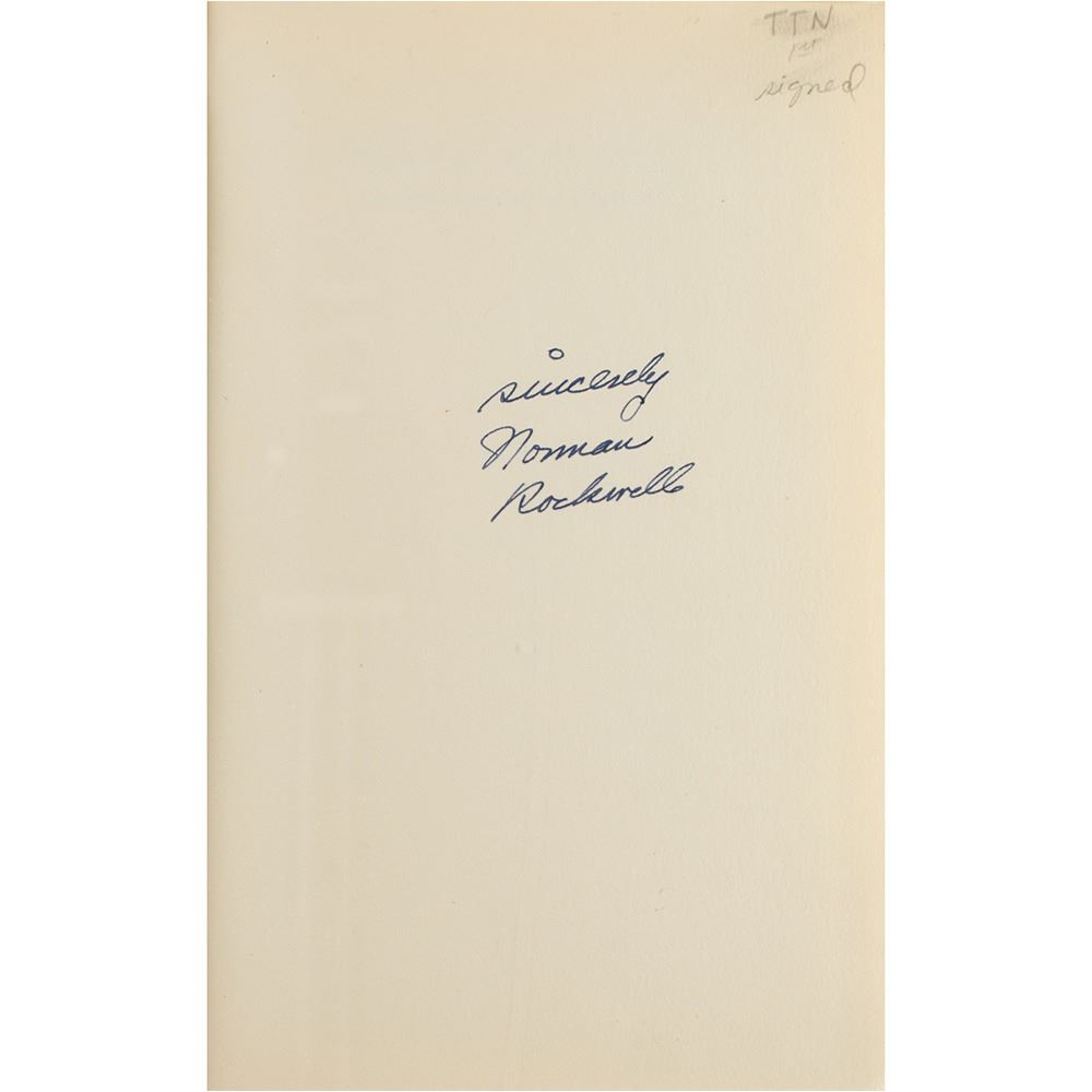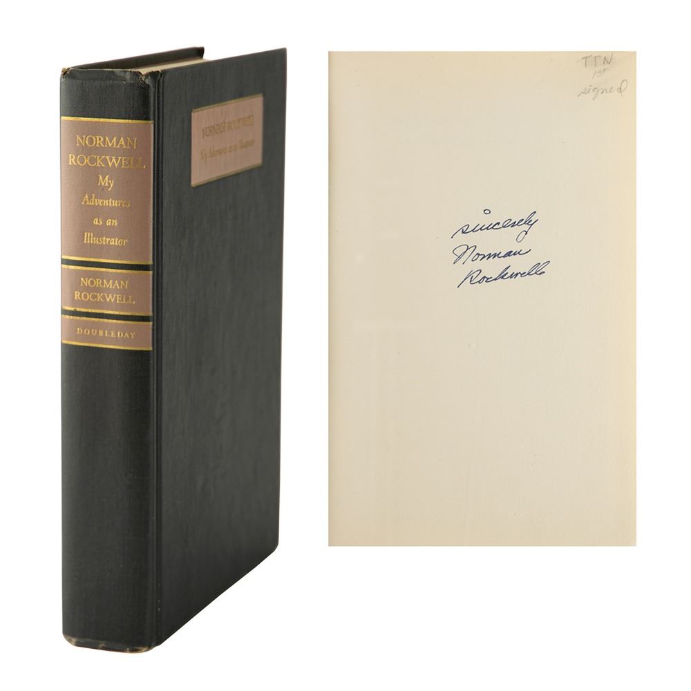 Signed book: My Adventures as an Illustrator. First edition. Garden City: Doubleday & Company, Inc., 1960. Hardcover, 6.5 x 9.5, 436 pages. Signed in fountain pen on a front blank, "Sincerely, Norman Rockwell." In fine condition, with slight rubbing to extremities.
