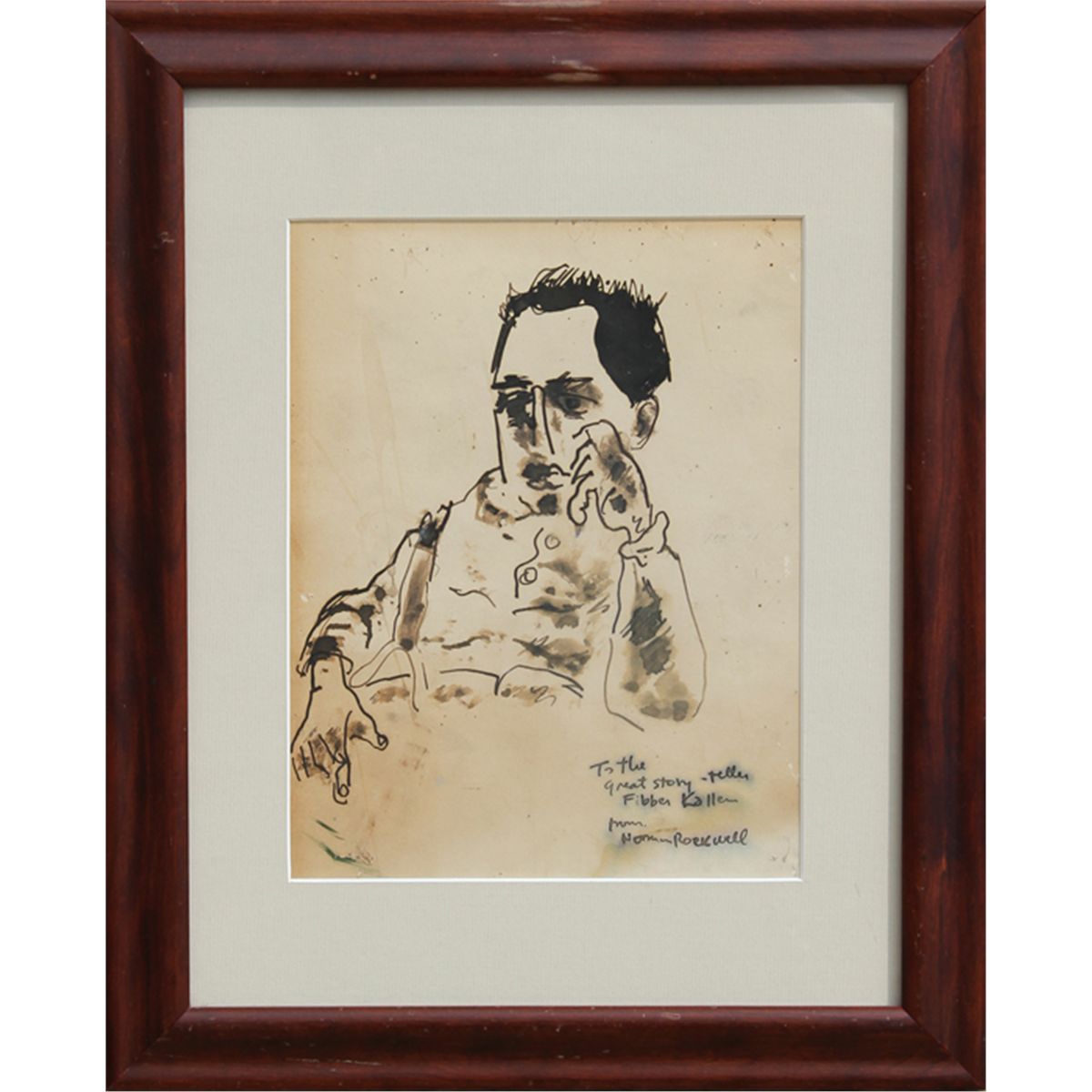 Norman Rockwell, To the great story-teller Fibber Kallem, Ink Drawing