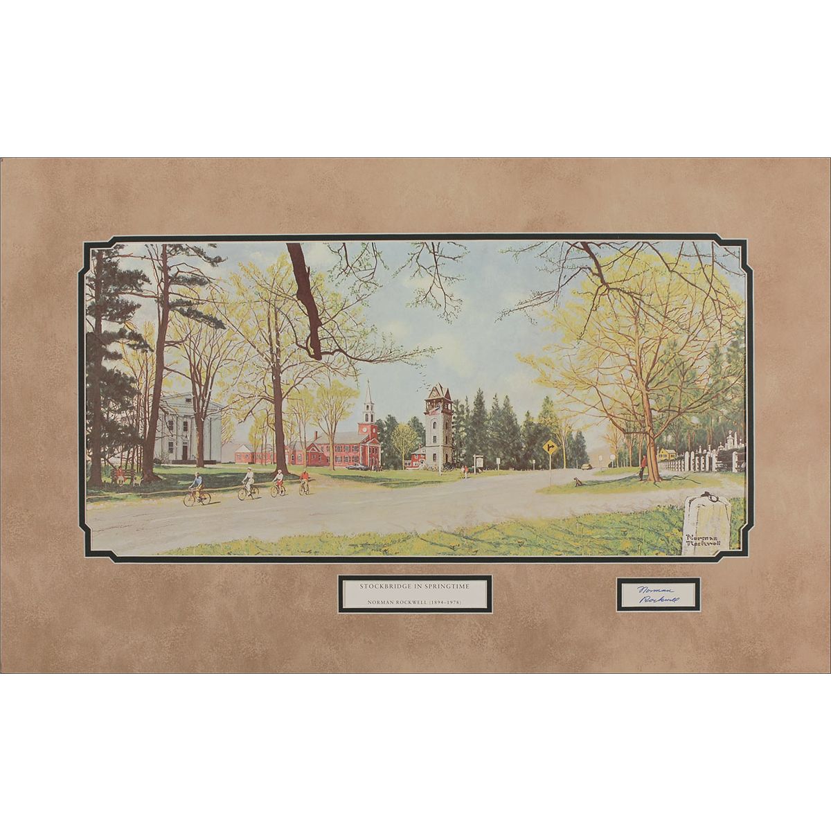 Felt tip signature, “Norman Rockwell,” on a white slip. Double matted with a color print of Rockwell’s ‘Stockbridge In Springtime’ to an overall size of 36 x 22. In fine condition. Oversized.