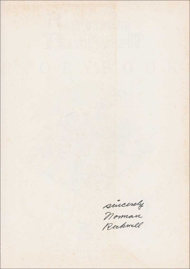 Signed book: The Norman Rockwell Storybook. Later printing. NY: Windmill Books, 1969. Hardcover with dustjacket, 9.5 x 12.25. Signed on the first free end page in black felt tip, “Sincerely, Norman Rockwell.” Some mild toning to signed page, front and back pastedowns, and some scattered foxing, creasing and edge tears to dustjacket, as well as a price clip, otherwise fine condition. RRAuction COA.