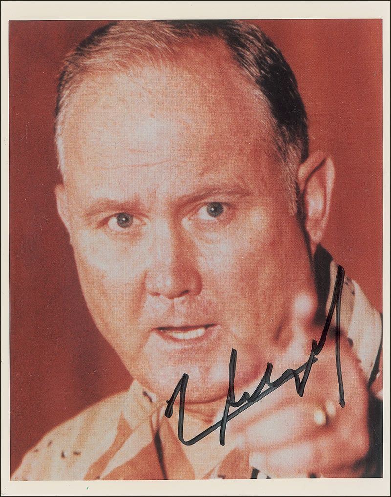 Color glossy 8 x 10 close-up photo of Schwarzkopf pointing emphatically, signed in black felt tip. In fine condition.