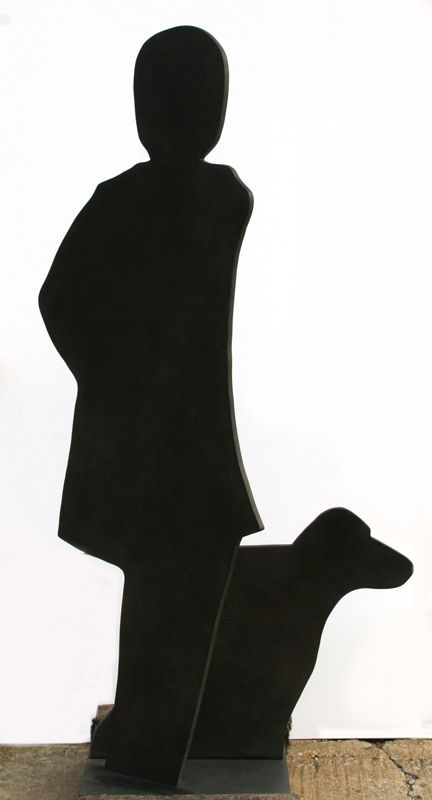 Normon Greene, Man and Dog, Cast Iron Sculpture