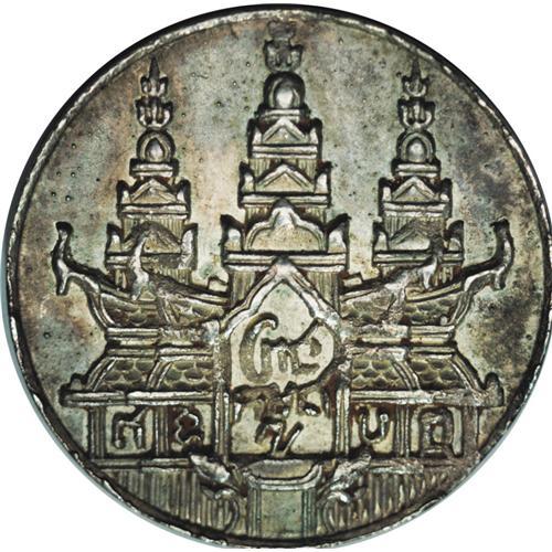 <B>Norodom I Tical CS1208 (1847), </B></I>KM37, toned AU with bold design details and some original mint luster. Very scarce grade.<BR><I>From the Monedas Oro Collection</B></I><BR><BR><b>Shipping:</b> Coin/Currency (<a target="_blank" href="http://www.heritageauctions.com/common/shipping.php">view shipping information</a>)