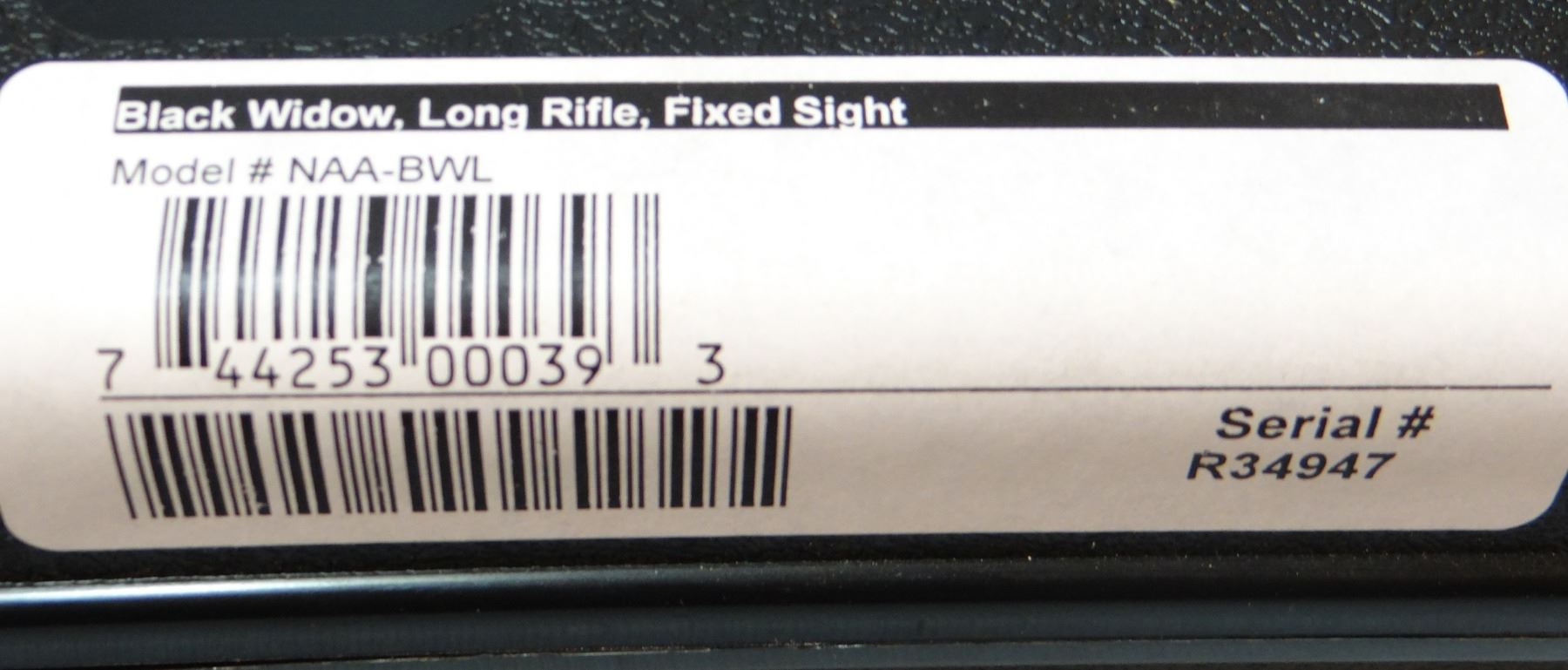 North American Arms Black Widow, model #NAA-BWL, .22LR, fixed sight, 5 shot, s#R34947