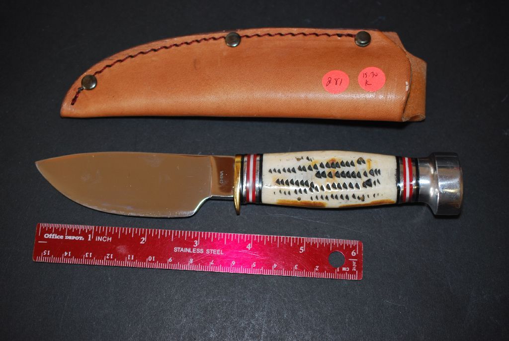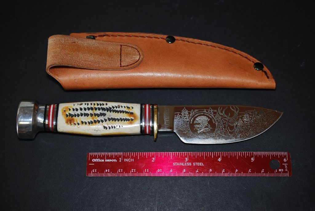North American Hunting Club Collectible Knife & Sheath With Buck Scene On Blade; EST. $15-30