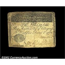 North Carolina April 2, 1776 $10 Very Fine. A very nice circulated example from this extremely popular North Carolina issue. The issue consisted of seventeen different denominations, many of which came with six or more different vignettes. This Ten Dollar Peacock has several endorsements on its blank back. Important notice: We expect to be auctioning lots at the rate of 200-250 per hour. Sometimes eBay Premier live bid software cannot keep up with that pace, so we strongly recommend that you place a realistic proxy bid now as insurance to avoid disappointment. Also please note that all Heritage/CAA lots purchased through eBay Premier carry a 20% Buyer's Premium. Please make sure you read the Terms and Conditions.