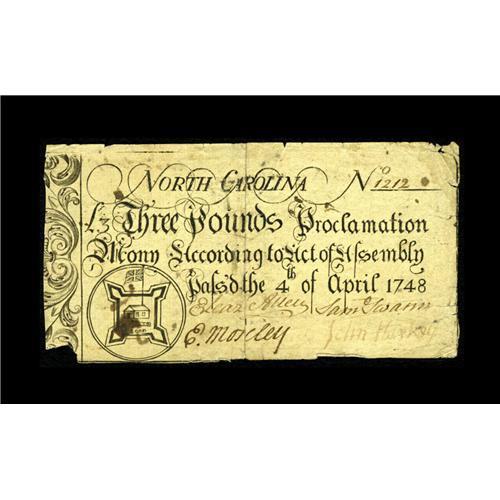North Carolina April 4, 1748 $3 Fine. There are a few