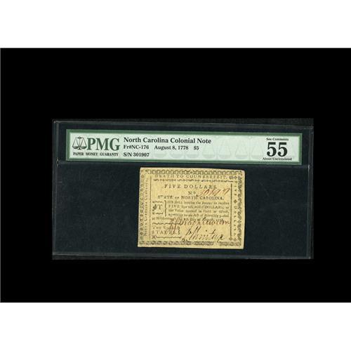 North Carolina August 8, 1778 $5 PMG About Uncirculated