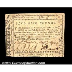 North Carolina December 1768 $5 Extremely Fine. A very nice example of the highest denomination from