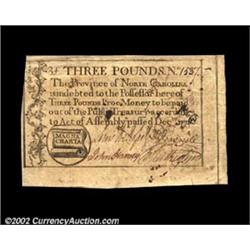 North Carolina December 1771 $3 Extremely Fine. An unusually nice example of this higher-denominatio