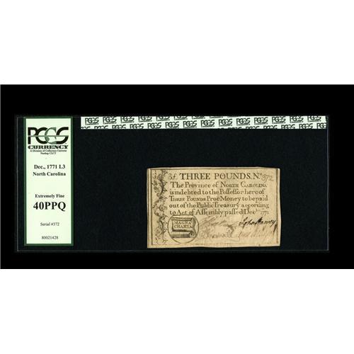North Carolina December, 1771 $3 PCGS Extremely Fine 4 North Carolina December, 1771 [$3 PCGS Extrem