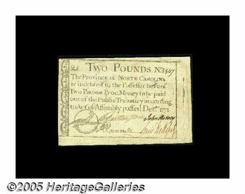 <B>North Carolina December, 1771 L2 Extremely Fine.</B></I> An absolutely problem-free example with exceptional margins, and a very nice overall appearance. A much less frequently seen denomination from this issue.