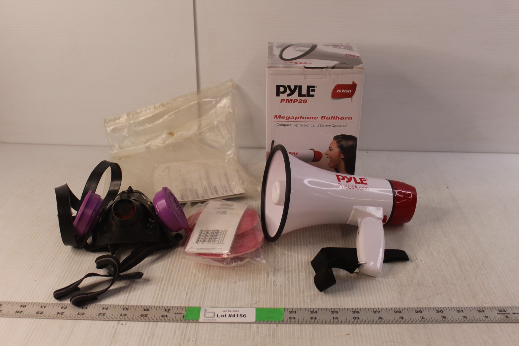 North Half Mask Respirator with (2) Filters & Pyle Megaphone, Needs Batteries
