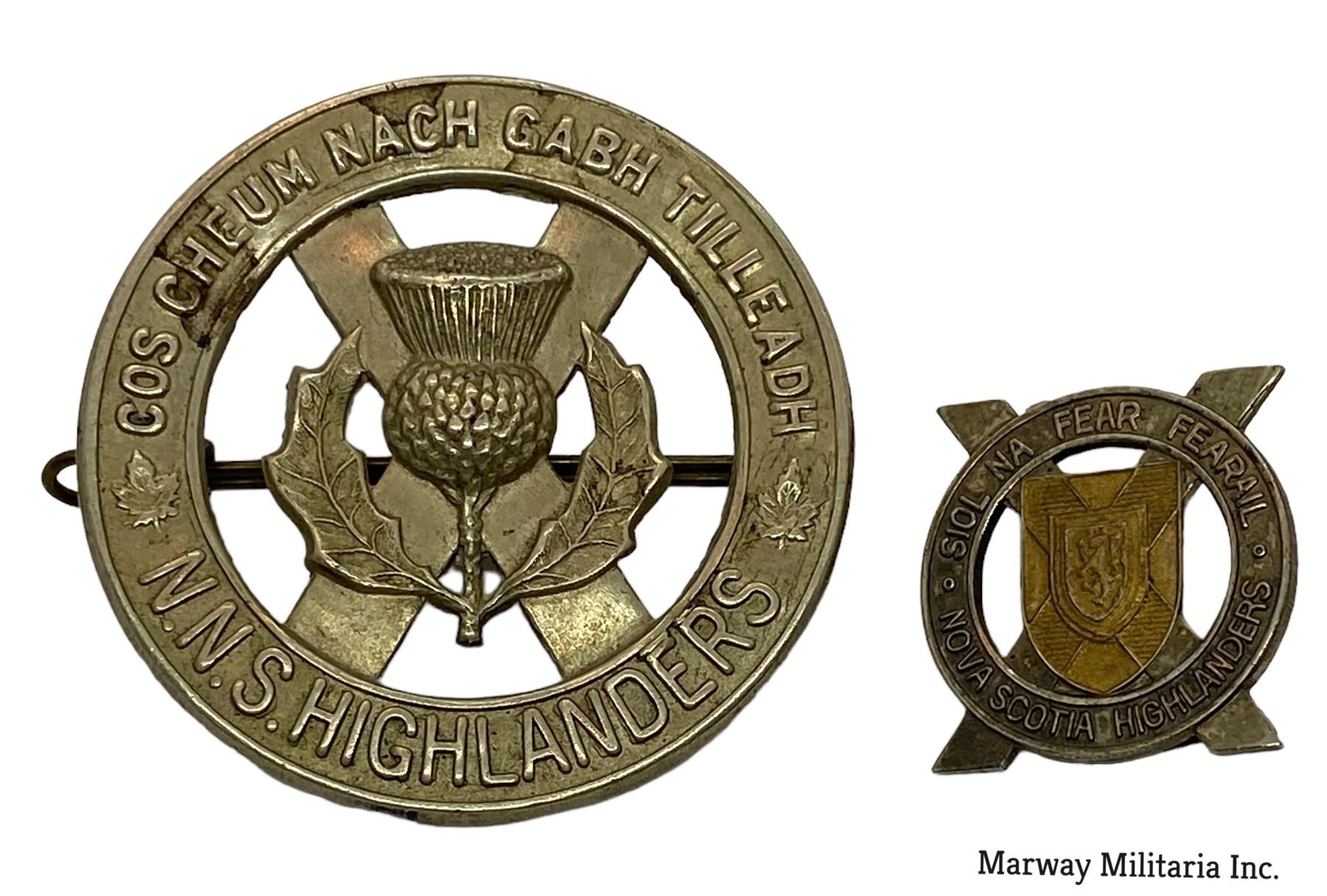 Lot of 2. White metal Cap badge with lug fasteners. Collar Badge / Sweetheart Pin, Silver plate with brass shield overlay. Pin back.