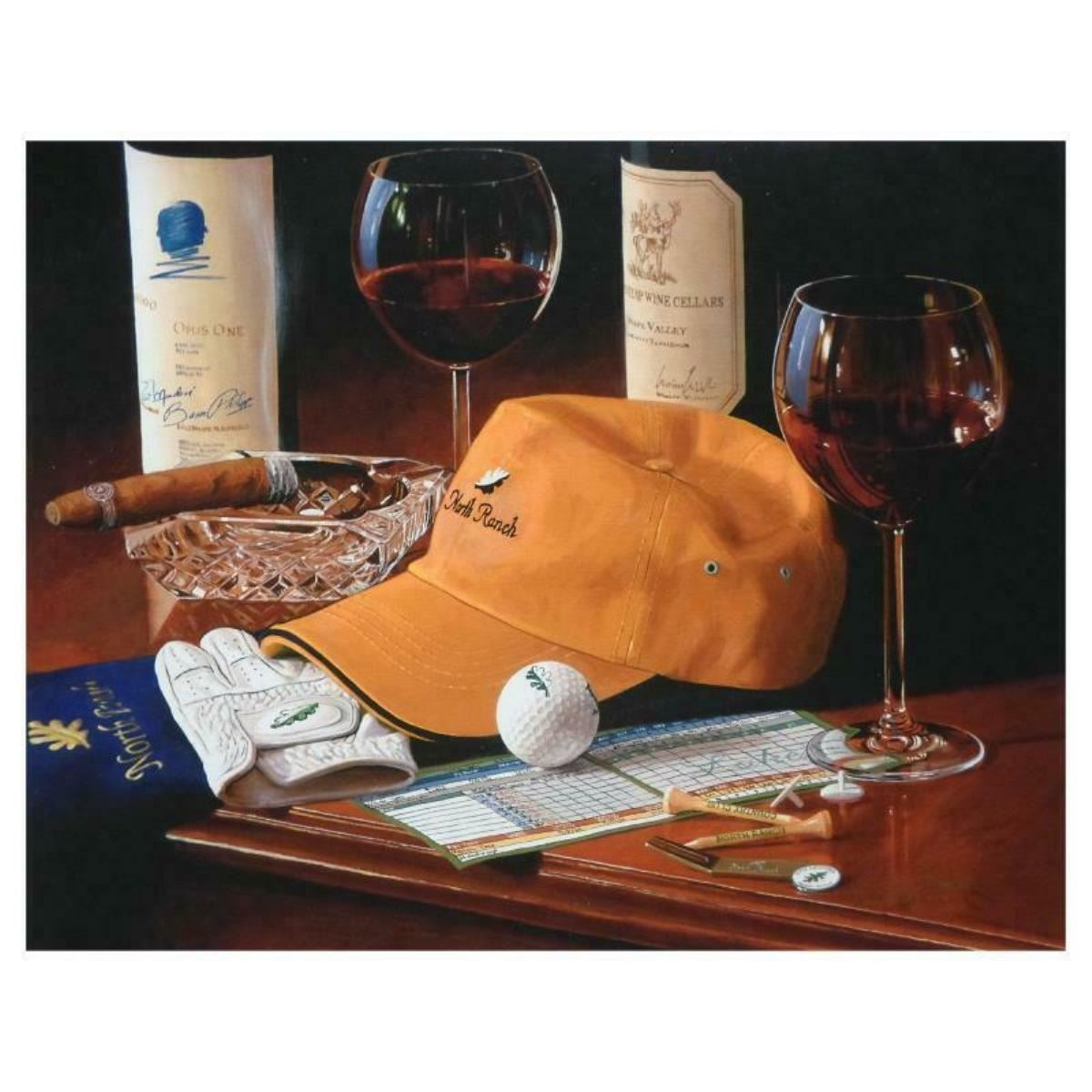 "North Ranch C. Club III" is a numbered limited edition giclee on canvas by Nobu Hairara. It comes bearing the artist's authorized signature and with a Certificate of Authenticity. Measures approximately 13"x16.5" (image).