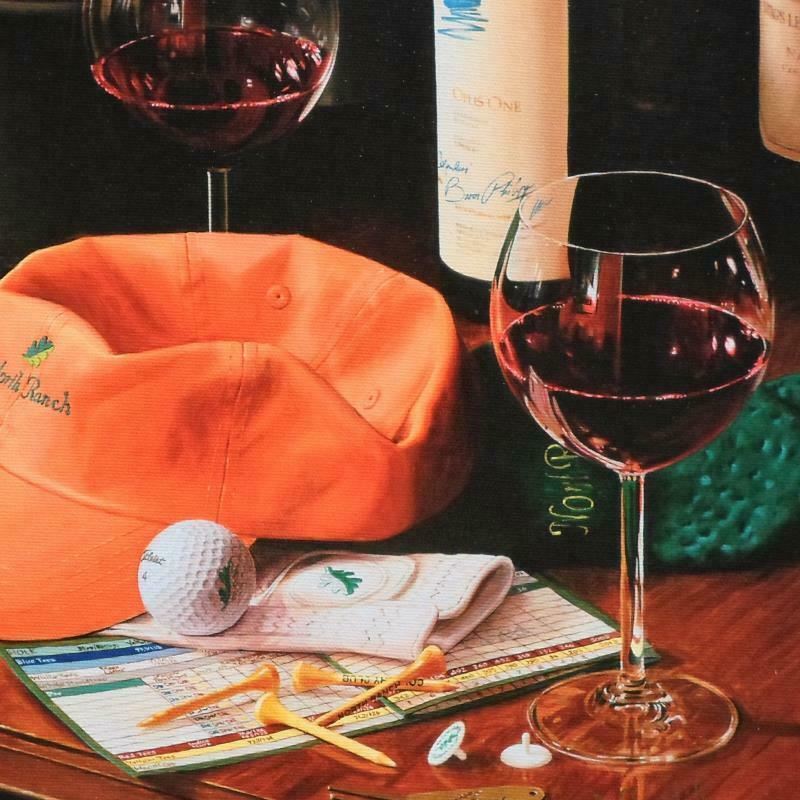 "North Ranch C.Club" is a numbered limited edition giclee on canvas by Nobu Hairara. It comes bearing the artist's authorized signature and with a Certificate of Authenticity. Measures approximately 11.25"x11.25" (image).