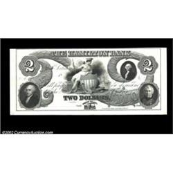 North Scituate, RI- The Hamilton Bank $2 G22 Durand 2129 ProofA lovely "Lazy Two" Proof mounted on thin card stock. Uncirculated, with a few tiny chips off the very broad bottom margin and a minor touch of mounting residue on the card's reverse. Important notice: We expect to be auctioning lots at the rate of 200-250 per hour. Sometimes eBay Premier live bid software cannot keep up with that pace, so we strongly recommend that you place a realistic proxy bid now as insurance to avoid disappointment. Also please note that all Heritage/CAA lots purchased through eBay Premier carry a 20% Buyer's Premium. Please make sure you read the Terms and Conditions.