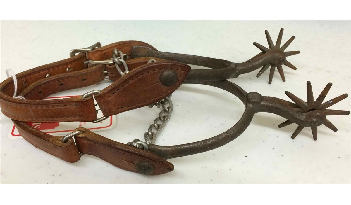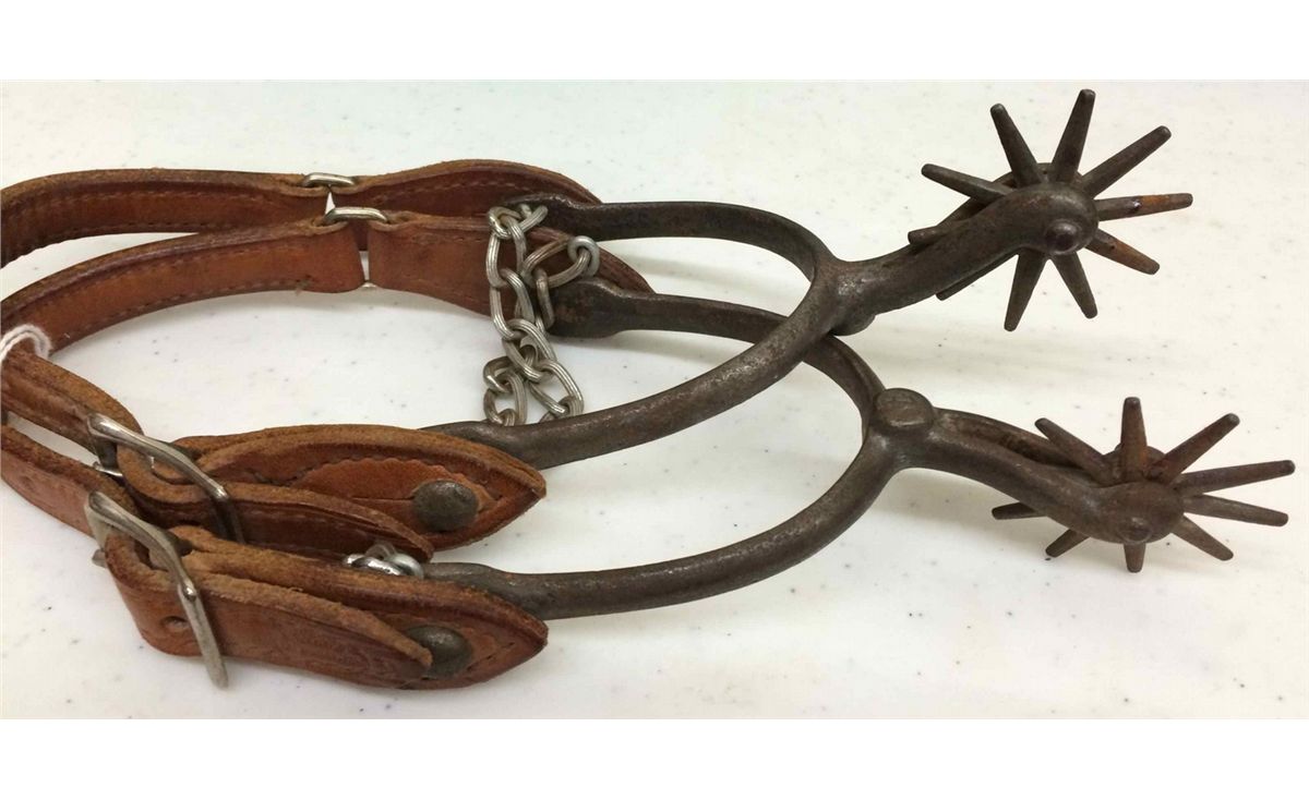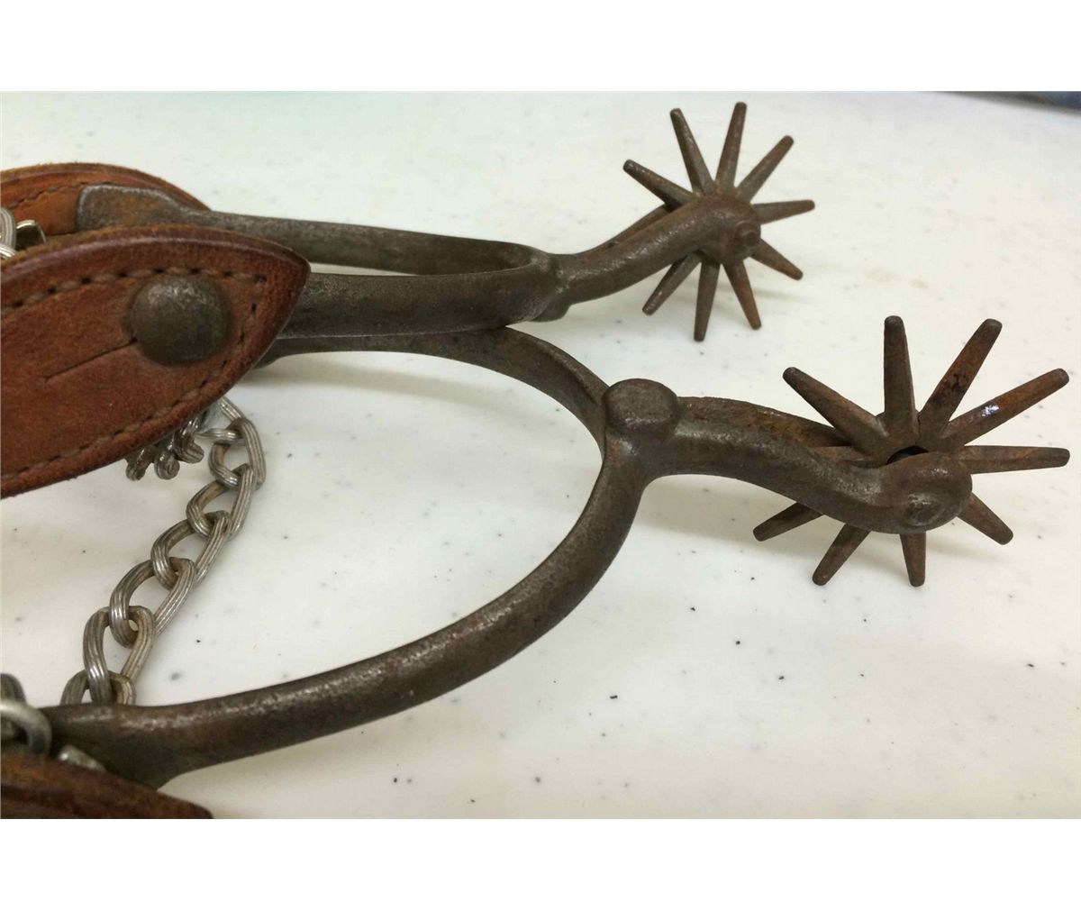 A pair of vintage North and Judd Spurs. Has their anchor hallmark on the bottom of the shank. Includes leather spur straps.