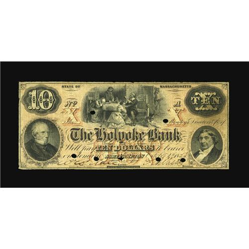 <B>Northampton, MA- The Holyoke Bank</B></I> $10 G18a<BR>A better note from an otherwise common issuer which features a central vignette entitled "Major Walden's Terrible Fight." <B>Fine+,</B></I> with several POC.<BR><BR><b>Shipping:</b> Coin/Currency (<a target="_blank" href="http://www.heritageauctions.com/common/shipping.php">view shipping information</a>)