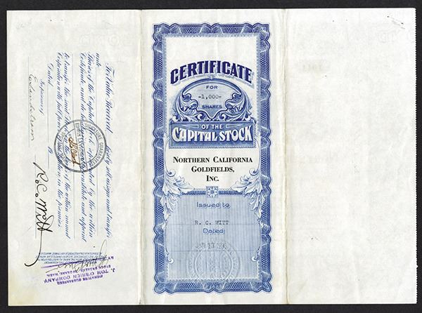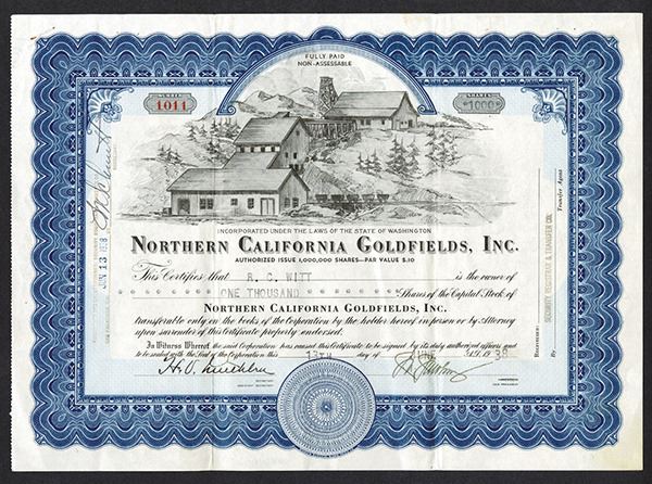 Washington. 1000 Shrs Stock Certificate. Issued. North Pacific BNC. Choice Very Fine.