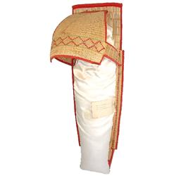 Northern California Indian-Pomo wicker weave cradleboard w/sunshade, maker's tag reads-Maggie Pedro,