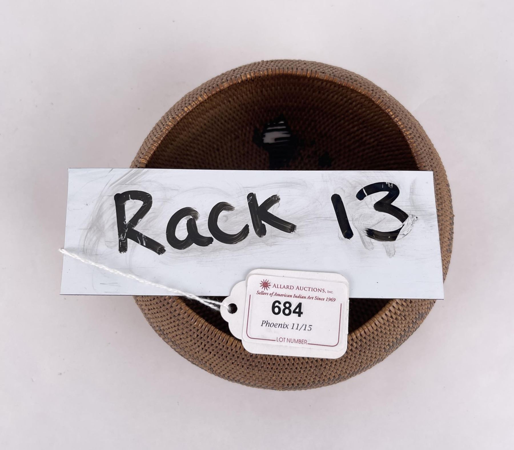 5 7/8" diameter, 2 7/8" tall. Hole in bottom as shown. Allard Auction Collection Inv: SAT 30205