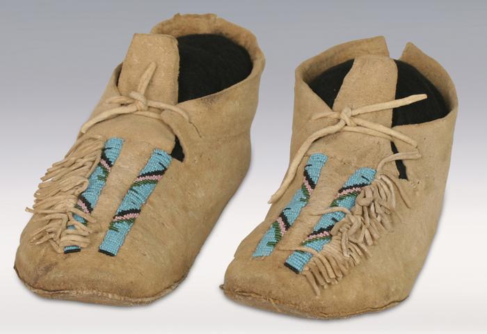 Northern Cheyenne Beaded and Fringed Moccasins, 1910