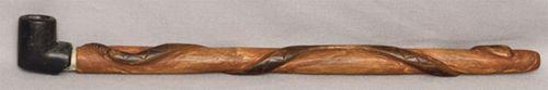 Northern Cheyenne Woman's Pipe. Snake carved stem. 11" long with 1" bowl. Old. Chip out of bowl. Stem fine. (est $600-900)