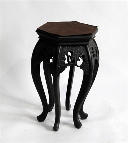 (China) Reproduction of a 19th Century N. Chinese stool, carved with hide top,19" by 11".