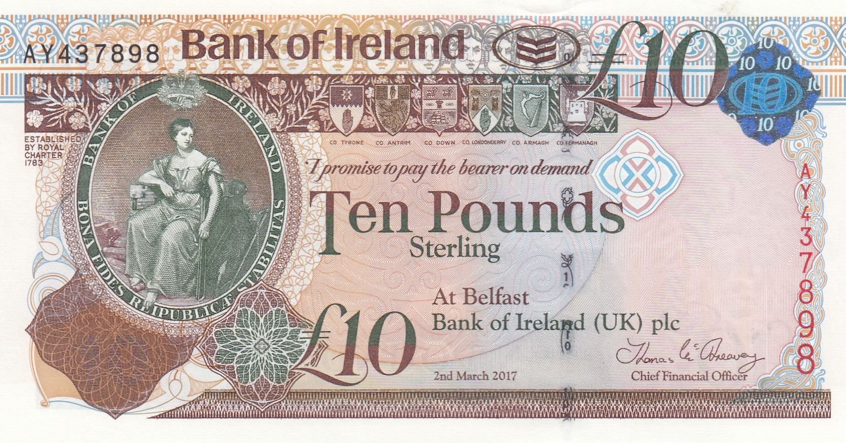 Northern Ireland, 10 Pounds, 2017, UNC, p87br/serial number: AY 437898