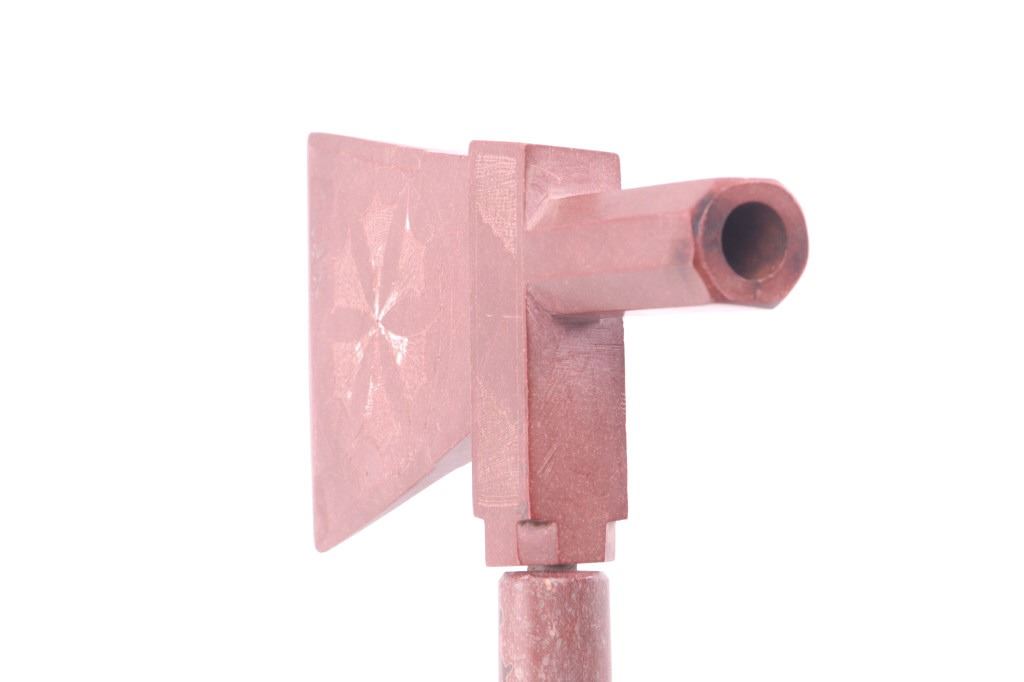 Featured in this lot is this hand carved Northern Plains Native American Indian Pipestone or catlinite pipe tomahawk, circa 1890-1930's. This piece was made for the tourist trade in the 1880-1920's. This has beautiful scrimshaw carvings across both the stem and tomahawk pipe bowl. The piece was hand made by a Minnesota Native American area tribe. The condition of this catlinite pipe is good, with no obvious signs of damage. The measurements of this pipe are 15 3/4" x 5 1/2" x 1".
