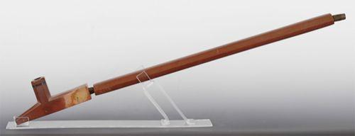 Northern Plains Catlinite Pipe. 24" length. Head is inlaid with pewter. 19th or early 20th Century. Fine condition. (est $1,000-1,500).