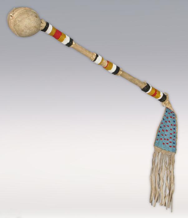 Northern Plains Ceremonial Club with Beaded Drop, 17" long, 19th century