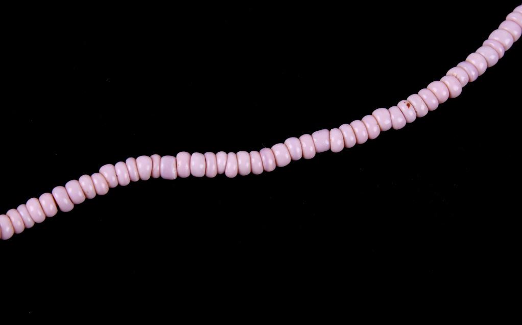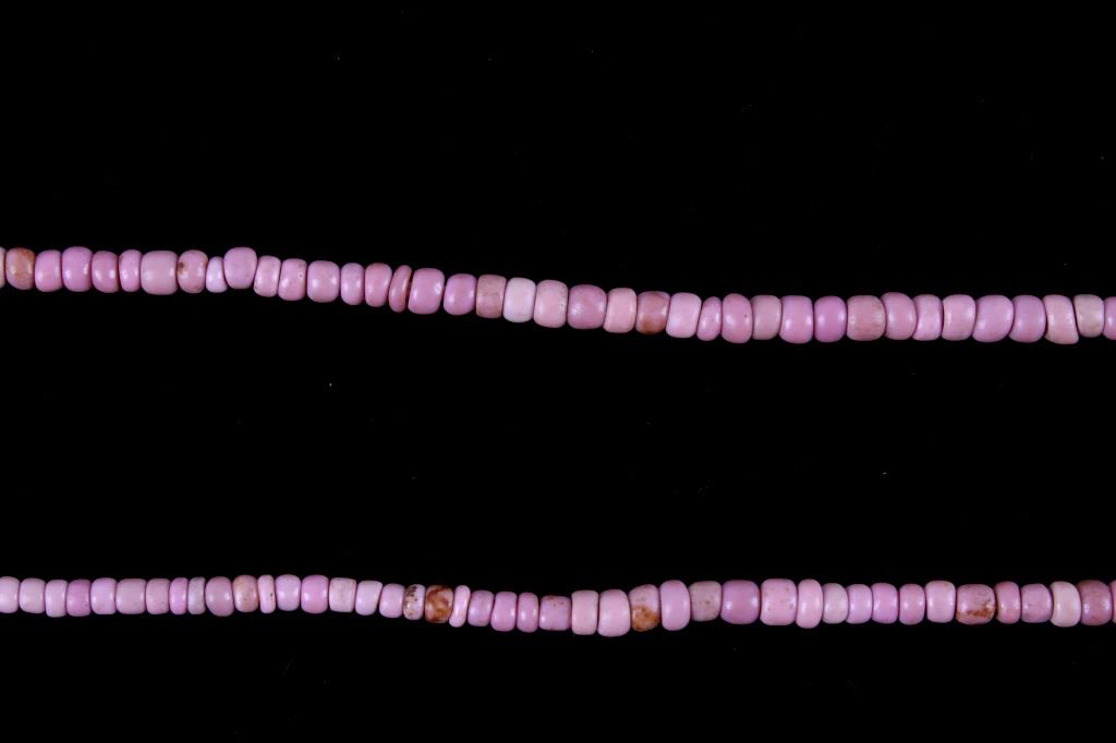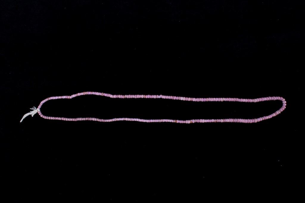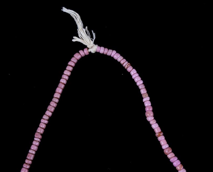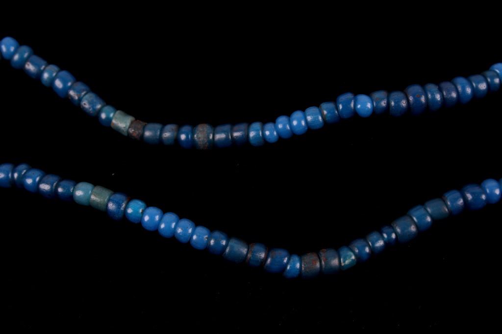 For your consideration are four Northern Plains Indian trade seed bead strands circa 19th century. These 1800's trade bead necklaces would have been used to trade with Native American tribes. Two of these strands show a Cheyenne pink color, and the strand with slightly larger seed beads show a dark shade of pink. The two other necklaces show a blue color, one being a cobalt blue seed bead strand with various small size seed beads with a few black and greenish blue beads, along with one red bead. The other displays lighter greenish blue seed beads. The cobalt strand is the shortest of the collection measuring approximately 7.5" the other strands measure approximately 10.5", 11.5" and 13" in strung length. The strands show in good condition with some wear due to age and use.