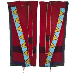 Northern Plains Indian-Blackfeet men's leggings, beaded strips on blanket cloth, c.1880-1900, edge trim may have been added later, but still old (1920's), 29"L.