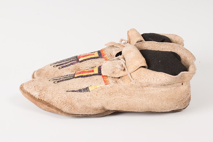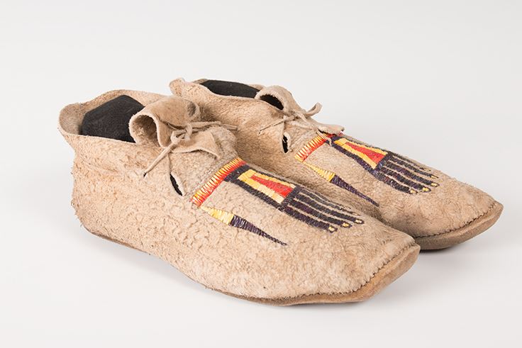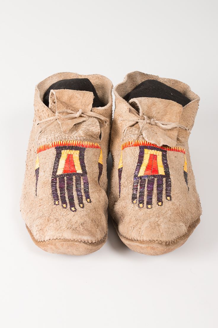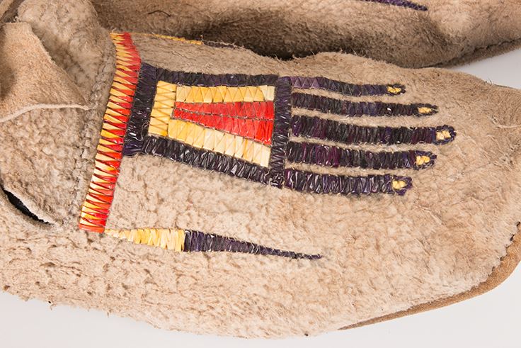 Northern Plains Man's Quilled Moccasins, 10 ¾" long