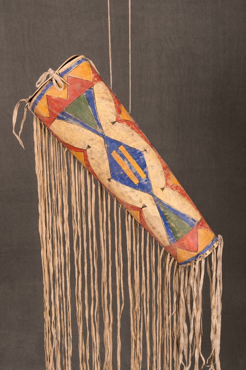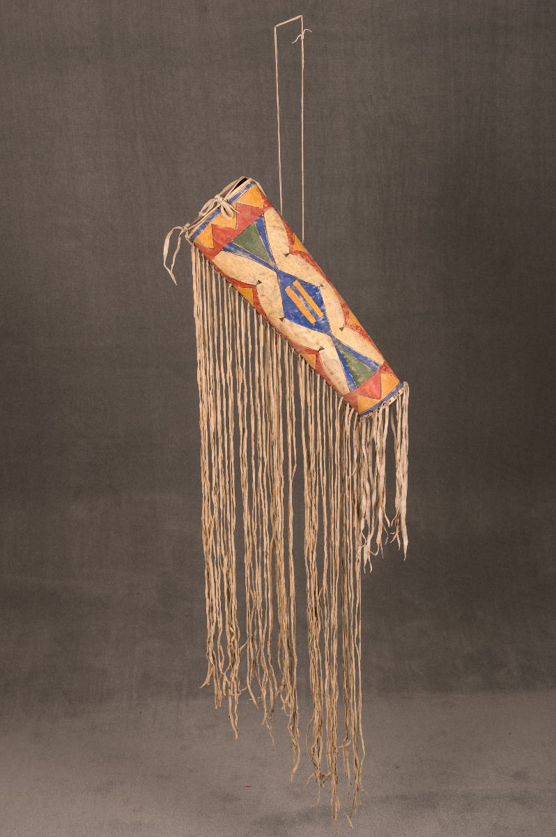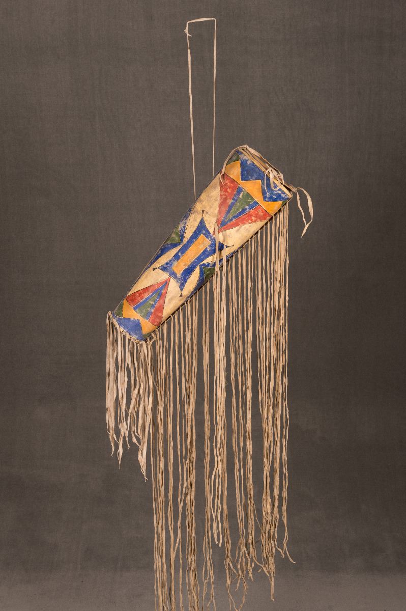Northern Plains Painted Bonnet Case. 23" long and very showy with fabulous 44" long fringe. 19th century.