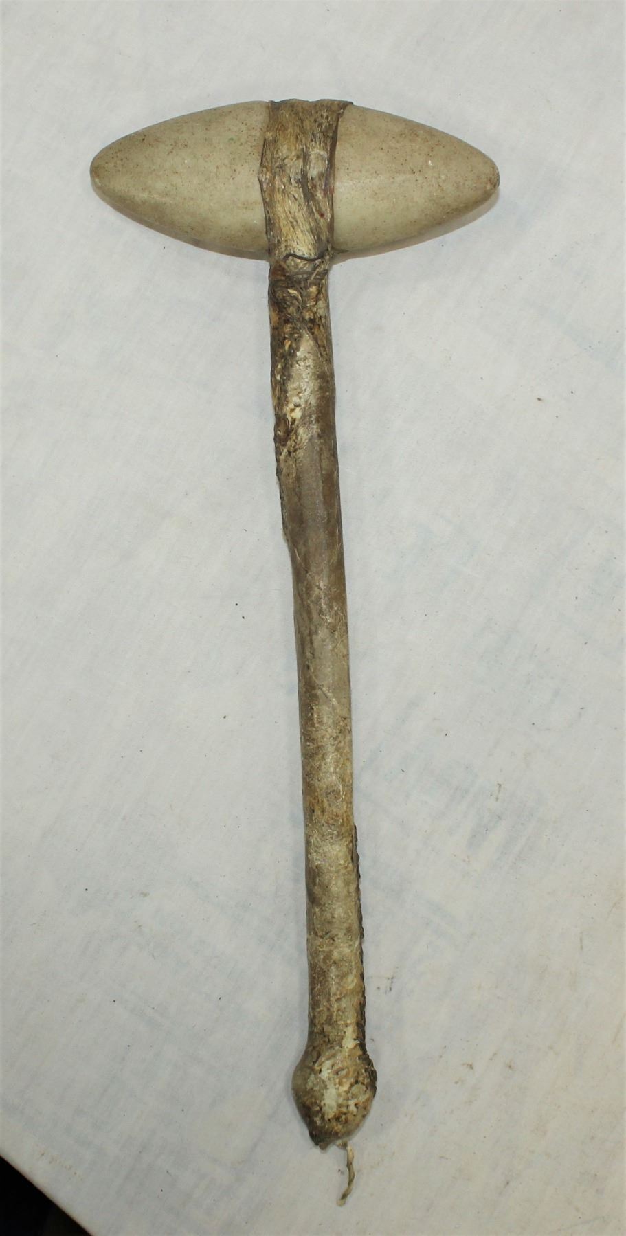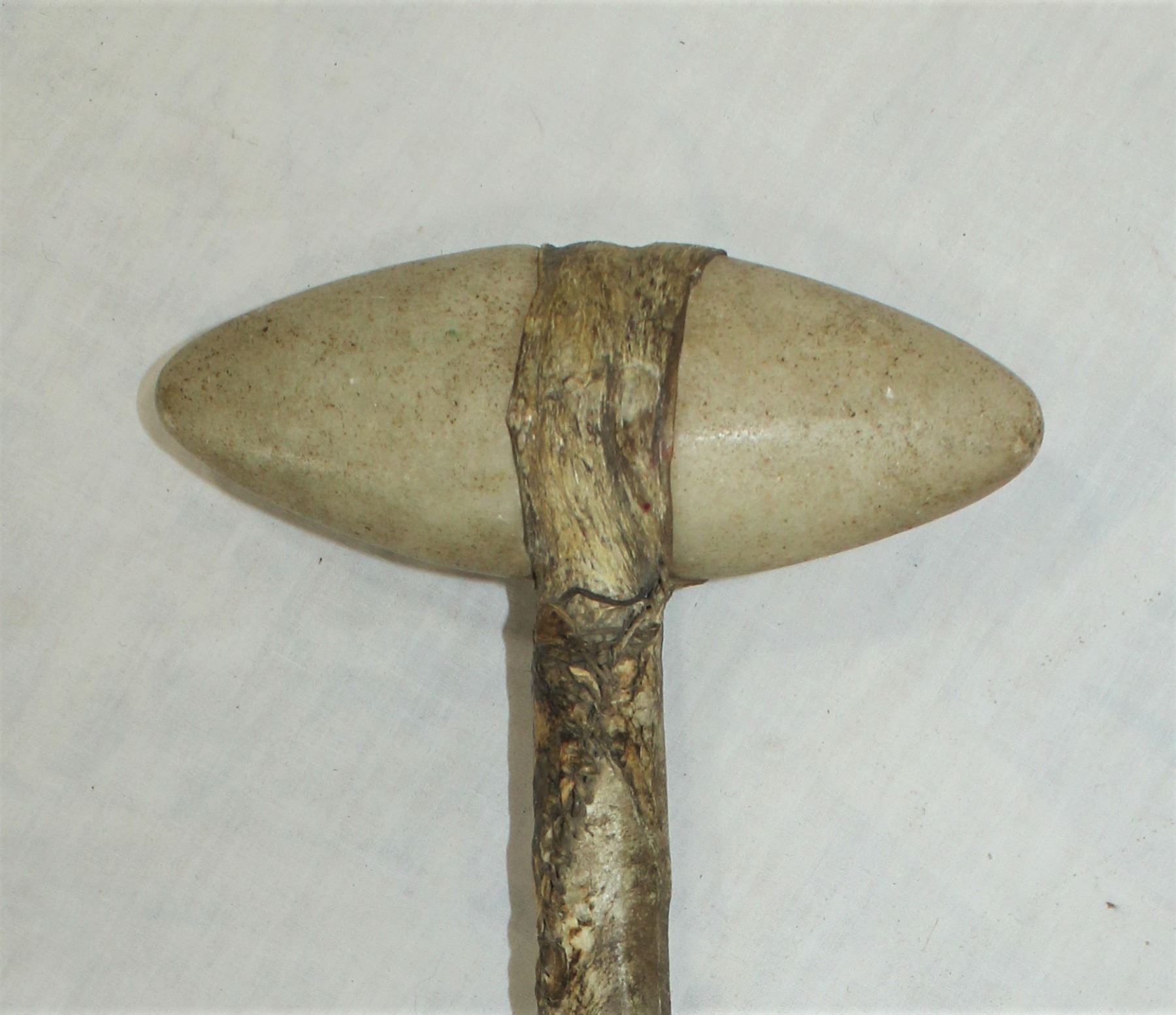 Untouched 19th Century Native American stone head club with incredible rawhide wrapped haft. Measuring 16" in length.