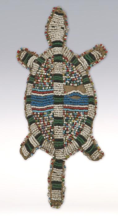 Northern Plains Turtle Fetish. 7 1/2" x 3 1/2". 19th century. Condition Report: Minor bead work loss to top easily repaired.