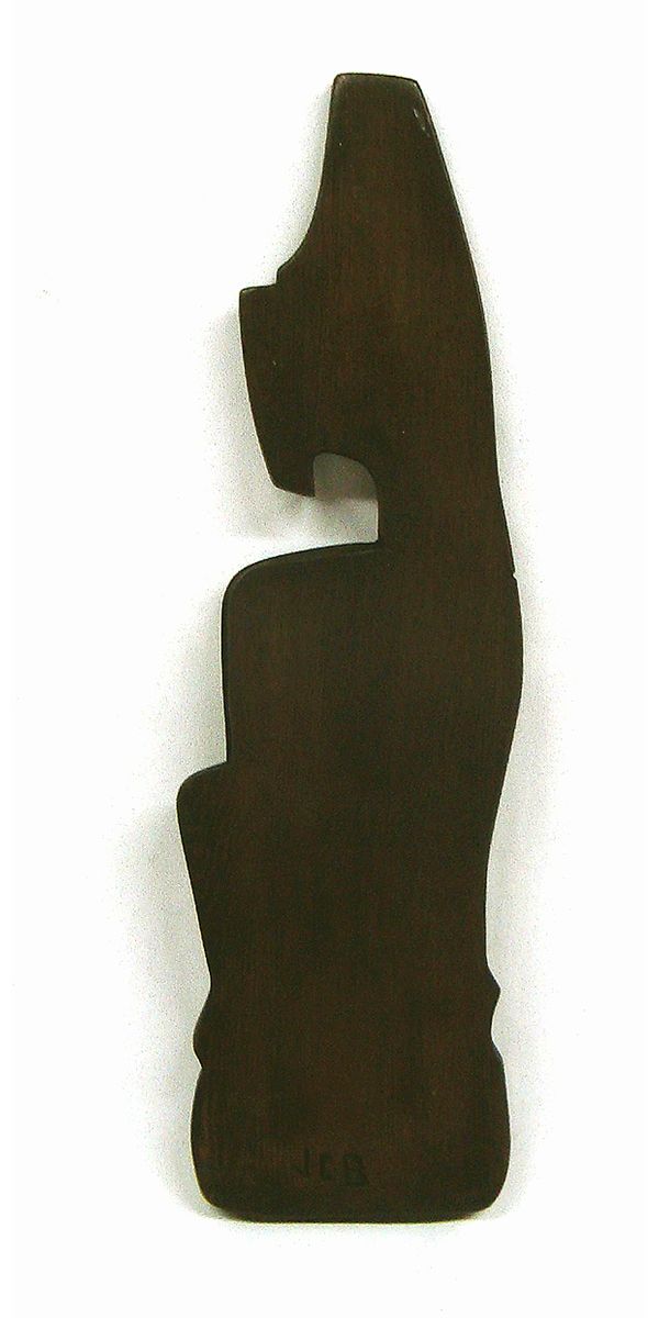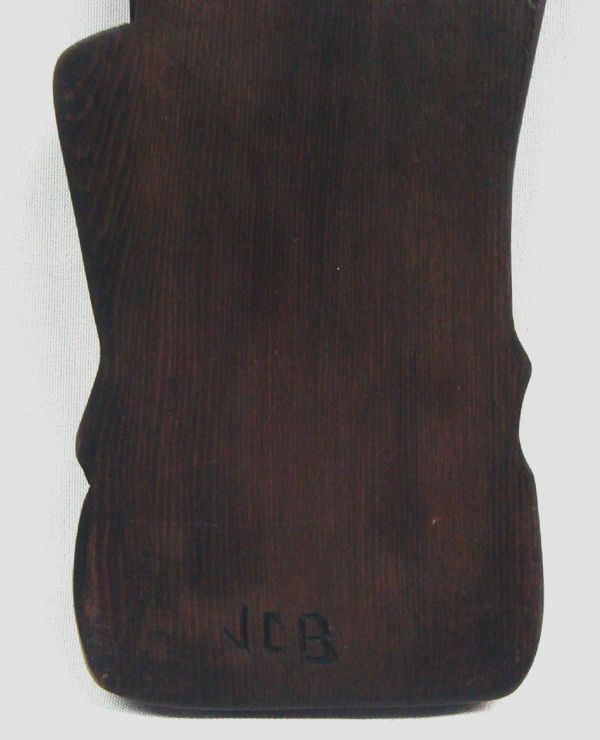 Northwest Carved Wooden Totem Placque by JCB, signed on back, 14.25''H x 4''W, Northwest Coast art is the term commonly applied to a style of art created primarily by artists from Tlingit, Haida, Tsimshian, Kwakwaka'wakw, Nuu-chah-nulth and other First Nations and Native American tribes of the Northwest Coast of North America, from pre-European-contact times up to the present. Northwest Coast art is distinguished by the use of formlines, and the use of characteristic shapes referred to as ovoids, U forms and S forms.