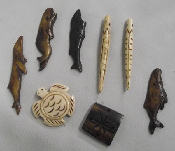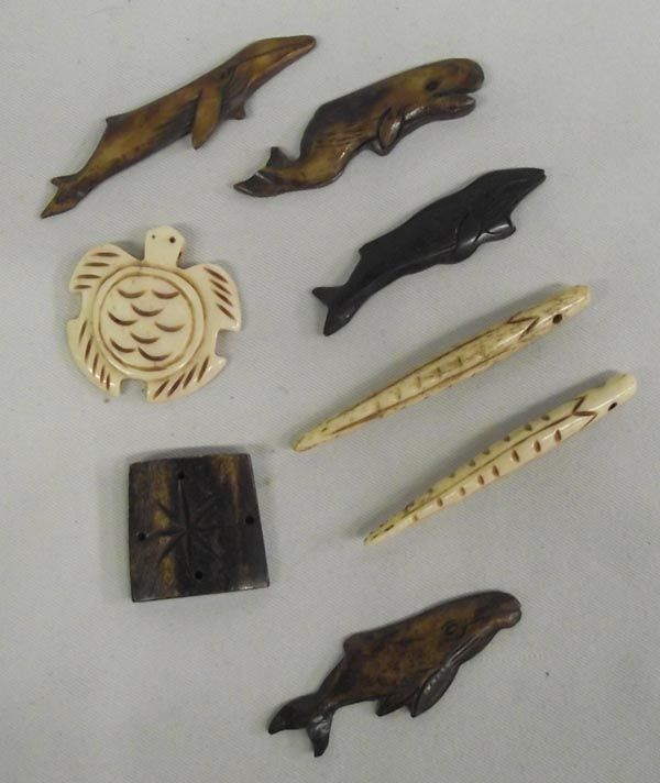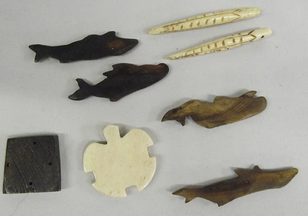 Northwest Coast Carved Animal Bone Figures. Eight small carvings that include whales, a turtle and other objects. The longest measures 2.5''Lx1''W.