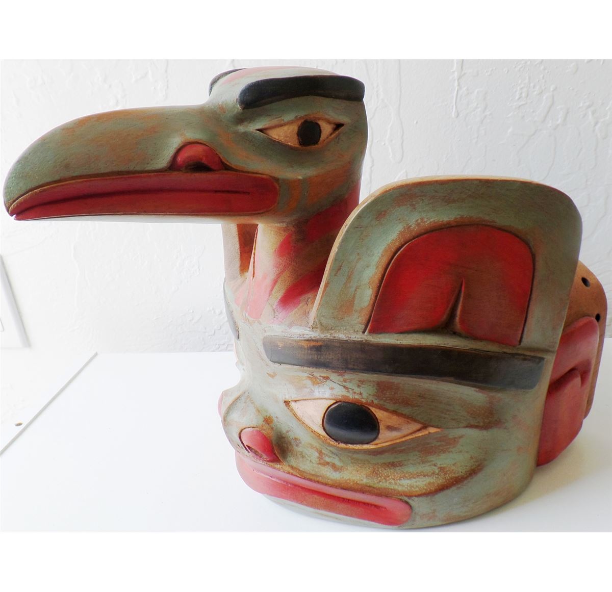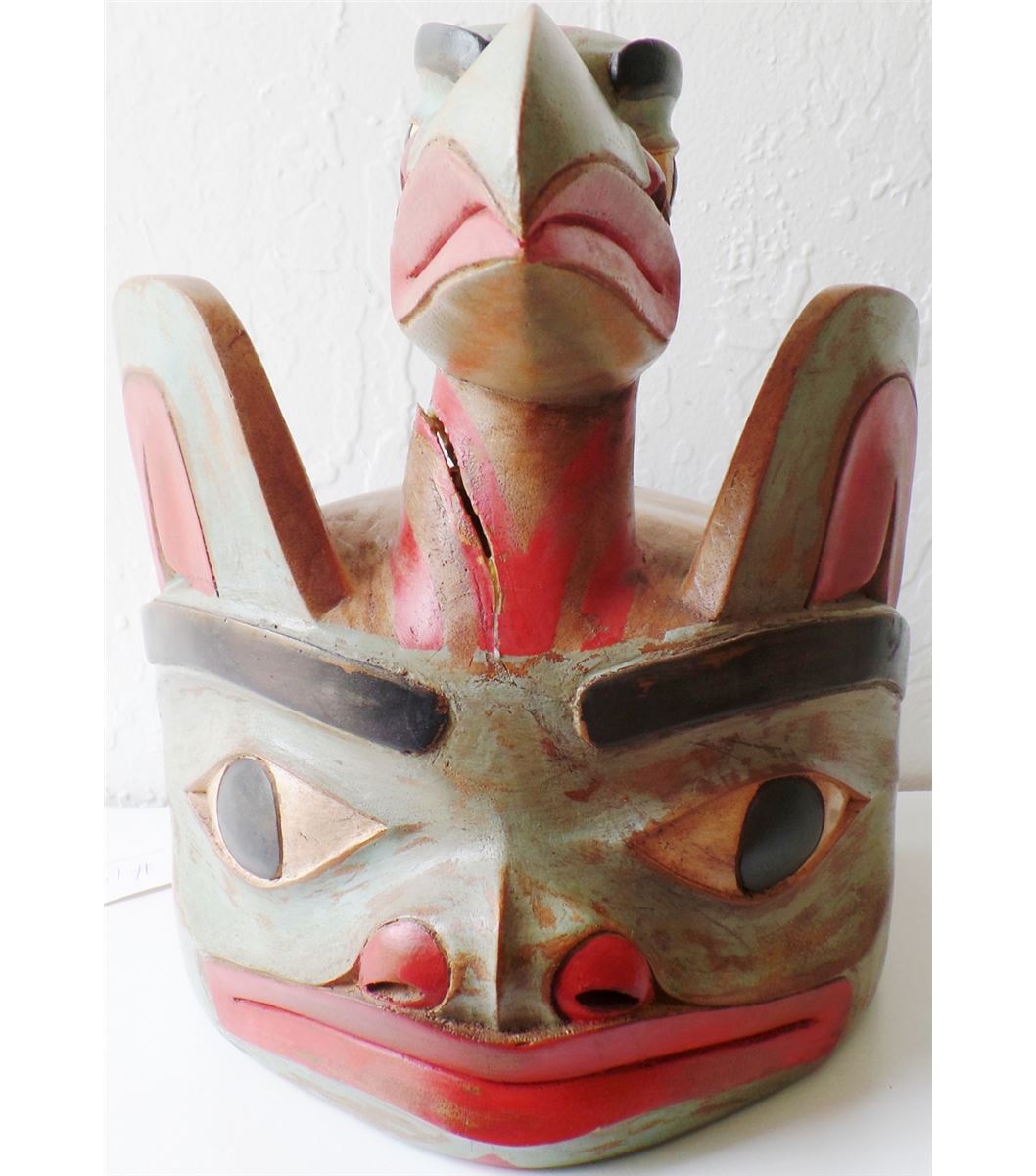 1930's possibly from Haida is a NW Coast Frontlet Mask made from wood and paint. There is a crack on the top of the mask. Please see photos. Measurements are 12 1/2 x 10 x 9 inches. Shipping: $50.00