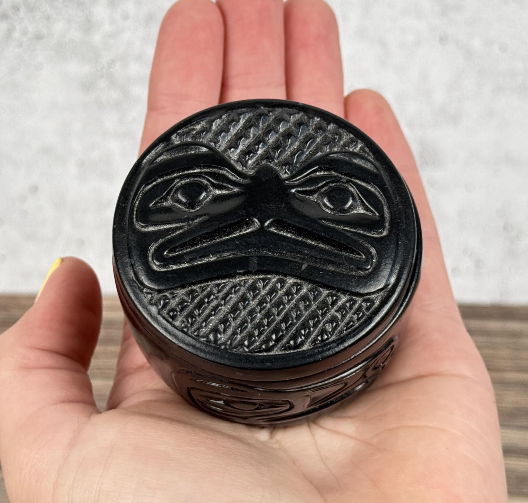 1 3/4" tall by 2 3/8" in diameter.