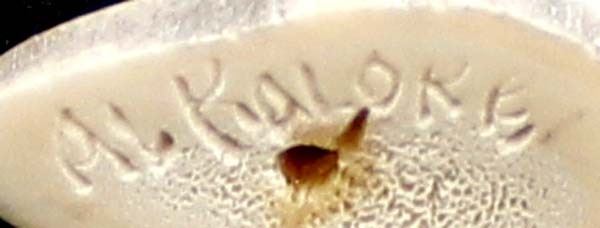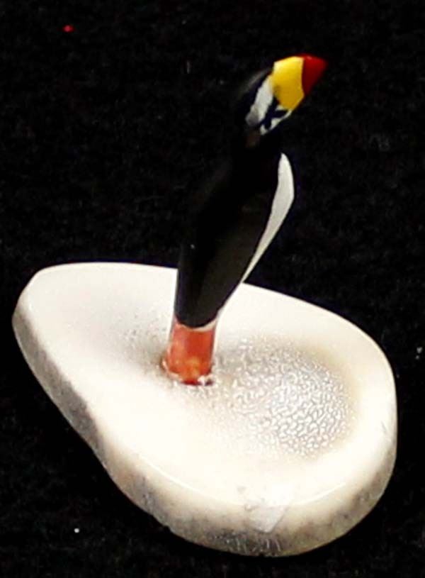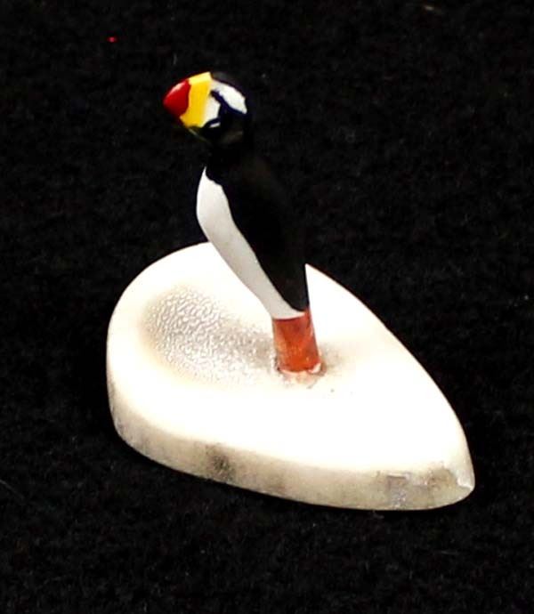 Northwest Coast Inuit Puffin Fetish Carving by Al Thomas Kaloke (1951-2014), measures 1.5'' x 1.5'' x 7/8'' and is signed on the bottom, on antler base, ''Al Thomas Kaloke is a member of the Alaskan Native Inupiat Tribe from Nome.''